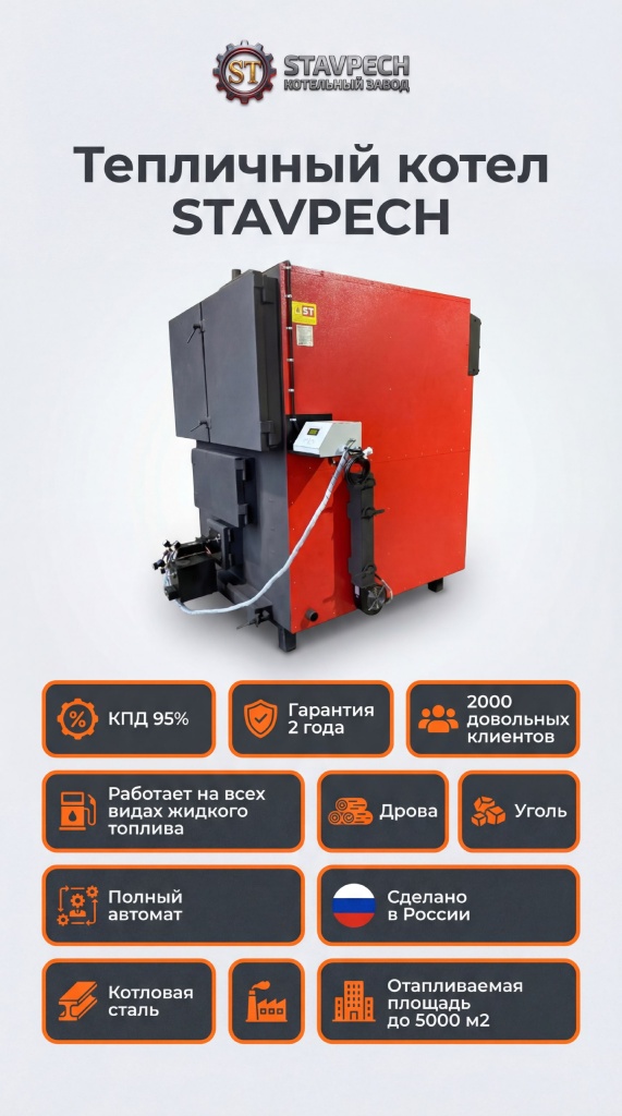 Универсальный котел STVK 500 Укомплектован жидкотопливной горелкой ГНОМ.